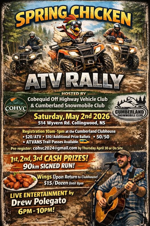 We have teamed up with Cumberland Snowmobile Club and are proud to present our first Spring Chicken ATV Rally! Join us to kick off your season the right way on the mountain!
